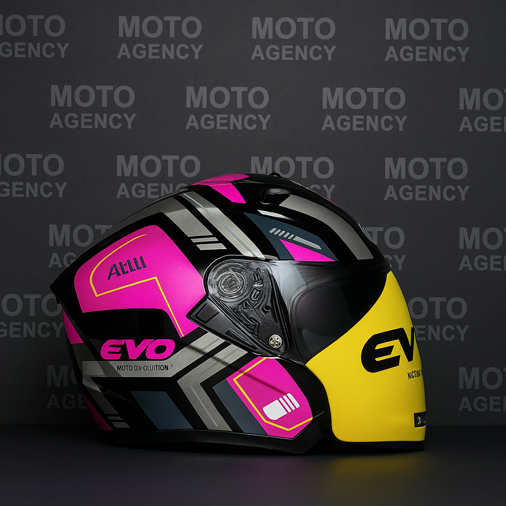 EVO ÇENESİZ YARIM KASK VİZÖRLÜ LİLA-SİYAH