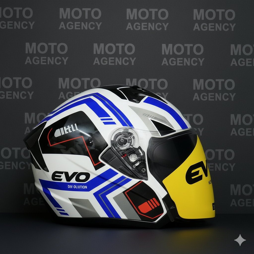EVO ÇENESİZ YARIM KASK VİZÖRLÜ MAVİ-BEYAZ